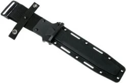 This is a sustainable and solid sheath for the KA-BAR 1217 and comparable models. Can be used by both left and right-handed users. The knife is kept in place by a click-system. With your thumb you ‘unlock’ the sheath and remove the knife.