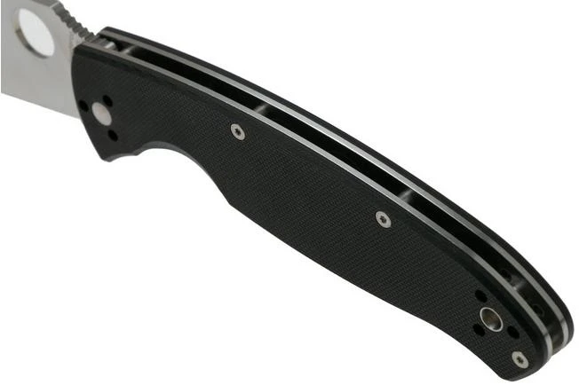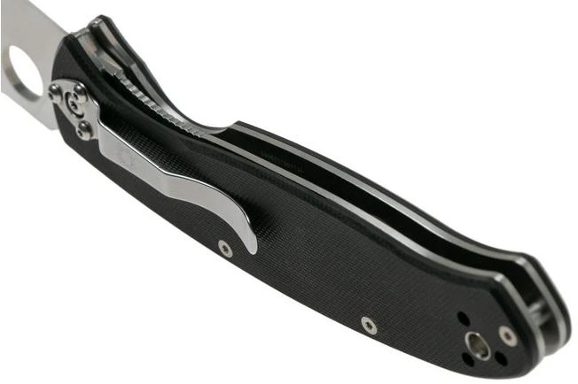Extremely robust pocket knife by Spyderco. The Resilience model is somewhat larger than the Tenacious. This knife features a solid 10.8 cm blade of 8Cr13MoV stainless steel. The G10 handle scales house stainless steel liners.