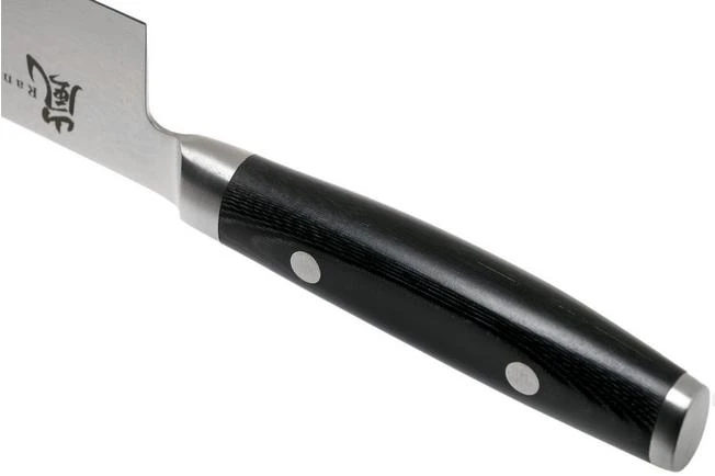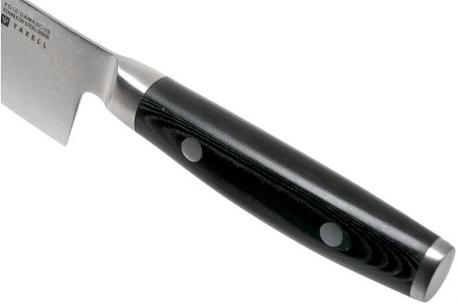 The Yaxell Ran Santoku 12.5 cm is a small but great version of the traditional Japanese kitchen knife. A Santoku is the Japanese version of the chef’s knife. The small blade of this santoku is perfect when finely cutting vegetables, meat, fish, onion, garlic and, of course, different types of herbs.