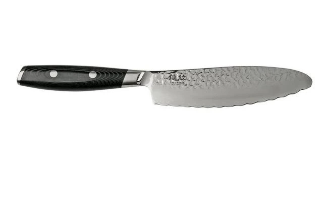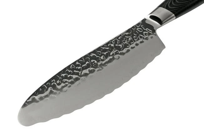 The Yaxell Tsuchimon panini knife is a Japanese bread knife with a stunning design. The remarkably-shaped blade is great when preparing sandwiches. With the serrations you can easily cut through the hard crust and with the high blade and the convex tip you can easily spread out jam or butter.